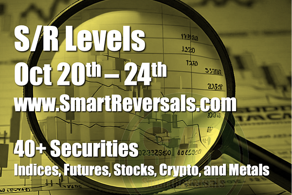 Support and Resistance Levels for Oct 20th - 24th, Stocks, Indices, Futures, Crypto, and ETFs