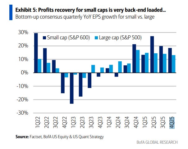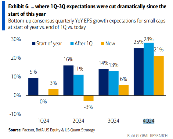 Small-cap companies are projected to experience a significant boost in earnings, with a year-over-year increase of approximately 20% anticipated from the fourth quarter of 2024 and continuing throughout 2025: