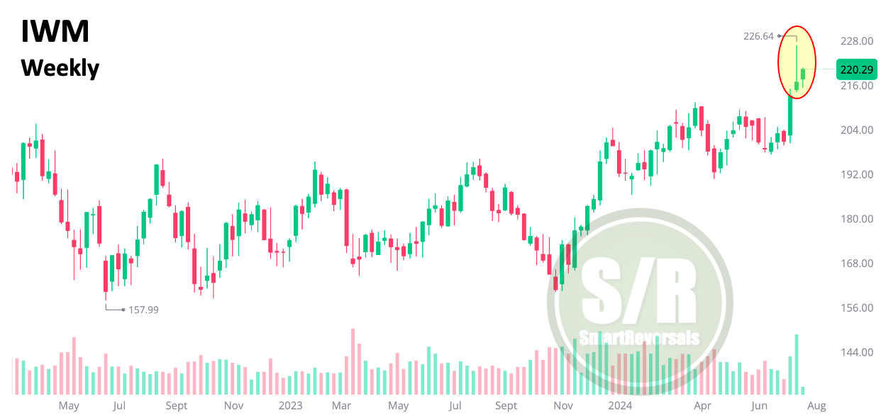 As mentioned in the Weekly Compass, the weekly chart doesn't look ideal with such a high wick on the candle, but IWM has historically proven to be a strong performer after a breakout.
