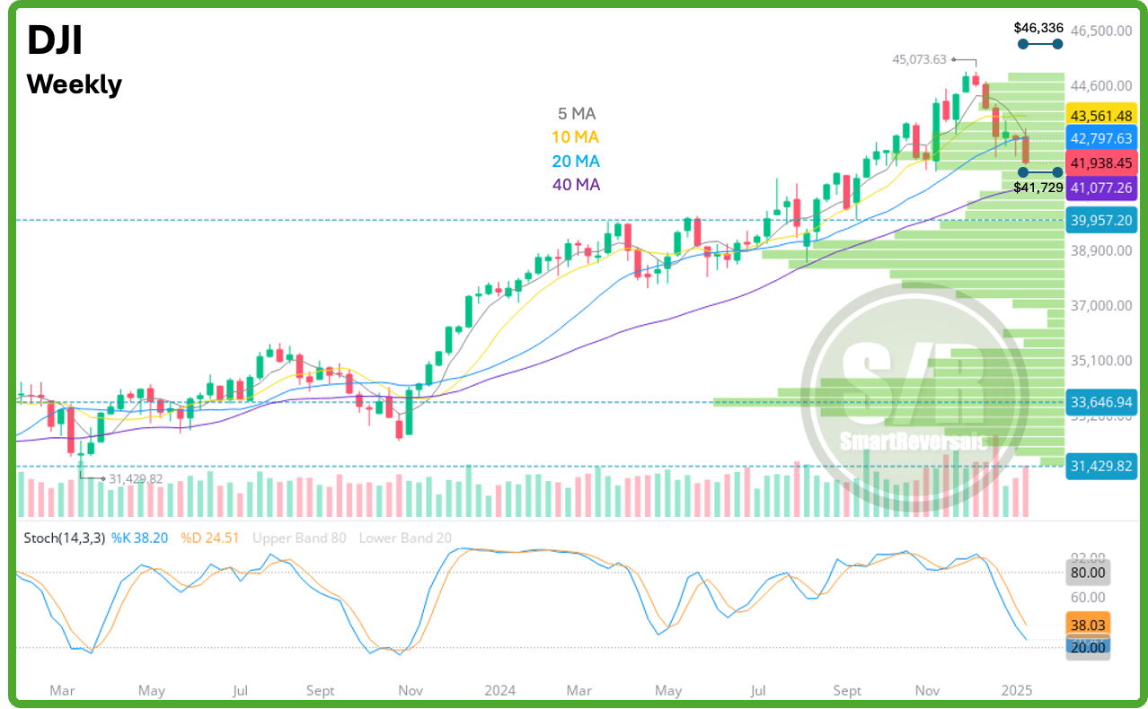 Last week, this analysis set $42,548 as the immediate bearish target, price action crossed that level with conviction reaching the annual S/R level at $41.7K, next week that level will be matched by the 40MA, adding strength to that zone for a potential bounce. The mid $41K level presents a lot of support levels.