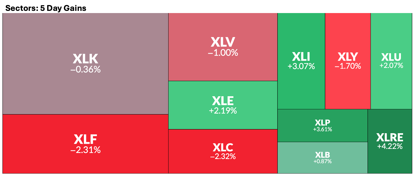 We are seeing significant variations week per week in sector performance, this week the main laggards were financials and communications, which is not surprising from the technical stand point, JPM was not the only financial stock brewing a pullback based on their overheated conditions, on the communications side we will study below the setup for GOOG, which is printing a pullback setup, and for META we will study the loss of a significant annual level.