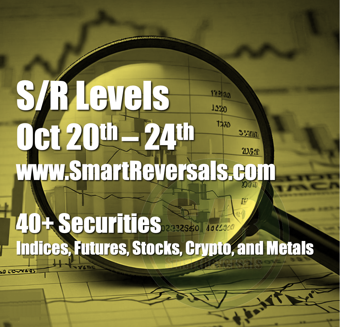 Support and Resistance Levels for Oct 20th - 24th, Stocks, Indices, Futures, Crypto, and ETFs