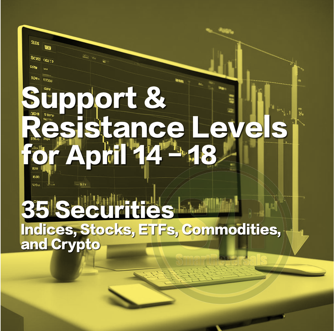The Support and Resistance Levels are updated every week for 35 securities including: SPX, NDX, DJI, ES=F, NQ=F, SPY, QQQ, IWM, DIA, SMH, TLT, TQQQ, SQQQ, UPRO, SPXS, UDOW, SDOW, URTY, SRTY, NVDA, META, MSFT, AMZN, GOOG, AAPL, TSLA, NFLX, COST, MSTR, PLTR, AMD, GLD, SLV, BITCOIN, ETHEREUM. If you trade some of those securities, this publication is for you.