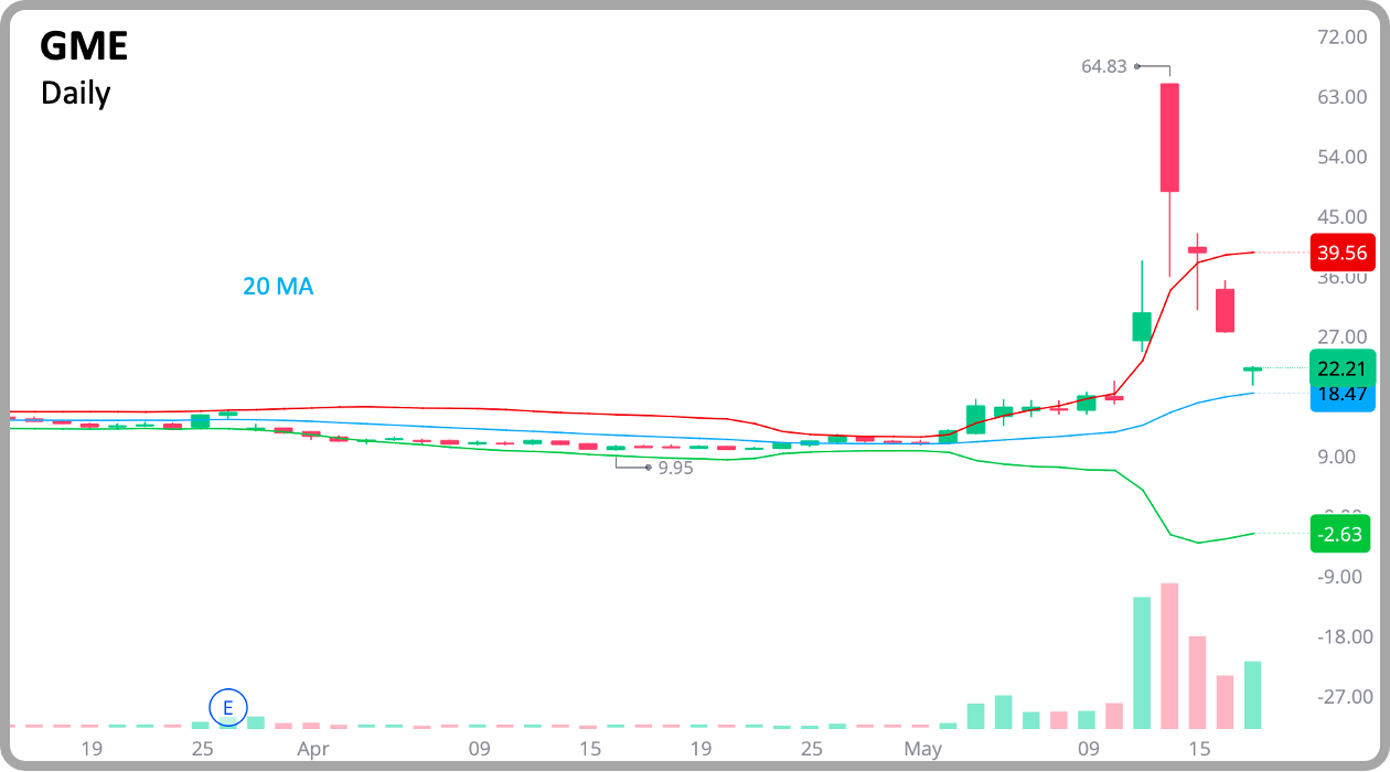 I've personally participated in such explosive surges in 2021. While it's tempting to "surf" these waves, the risk is substantial. Investors who bought GME on Tuesday afternoon, fueled by meme-mania, have witnessed a 54% decline in their capital. The situation is even worse for those who bought GME at the open on Tuesday ($64.8) and are still holding. They've incurred a 65% loss on their capital.