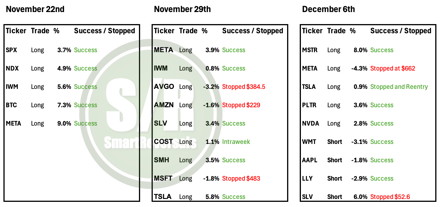 The performance speaks for itself. The table below details whether each called setup was bullish (long) or bearish (short). Out of 23 trades shared, 18 have successfully reached their bullish or bearish targets, some of them surpassing them. This 78% success rate serves as a transparent transparency report and a clear message: it’s time to upgrade to the paid plan.