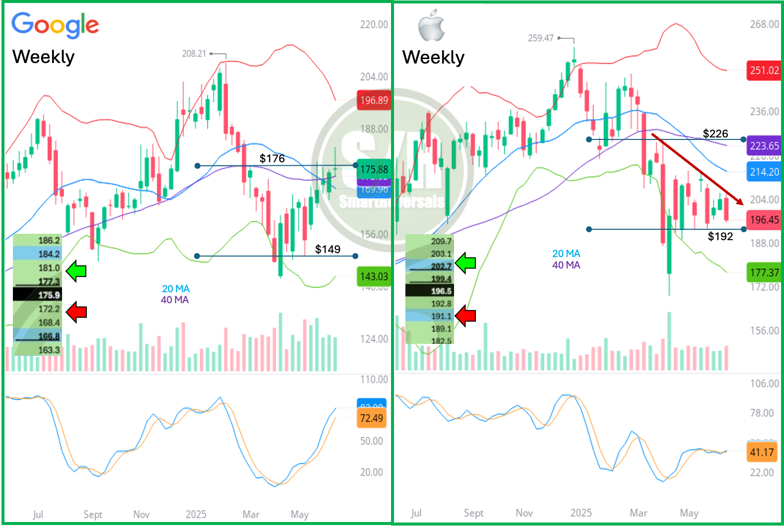 The weekly candle shows conviction, and $192 is very close to the latest price. If the $192 zone is breached, a major resistance level would be established, and the world's third-largest company by market cap would continue to hinder the major indices from reaching all-time highs.