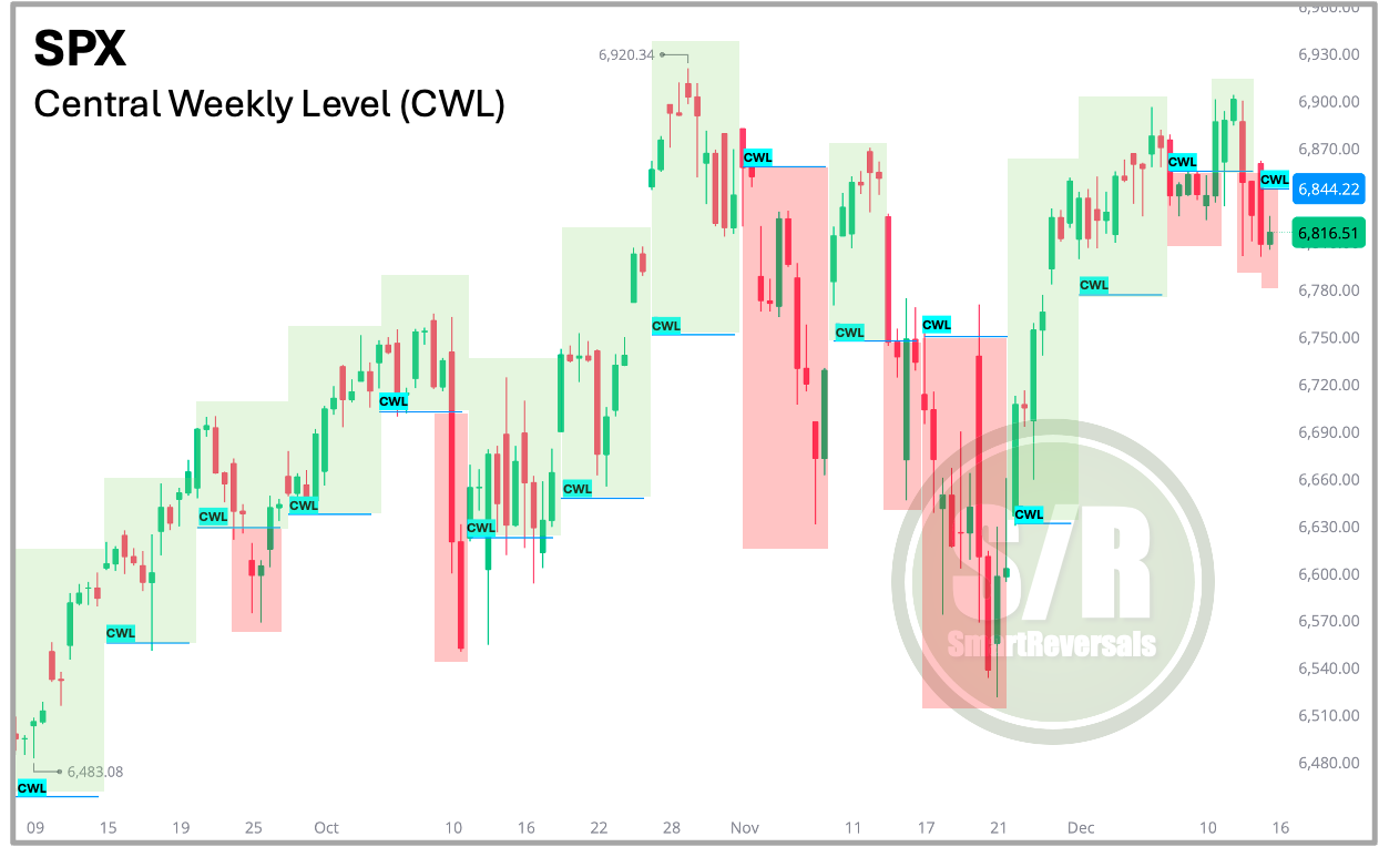 Crucially, I also manage risk. When a setup invalidates, as seen with NFLX today, the Central Weekly Level (CWL) serves as a precise technical reference for a stop loss (you set the stop based on your risk aversion or conviction).