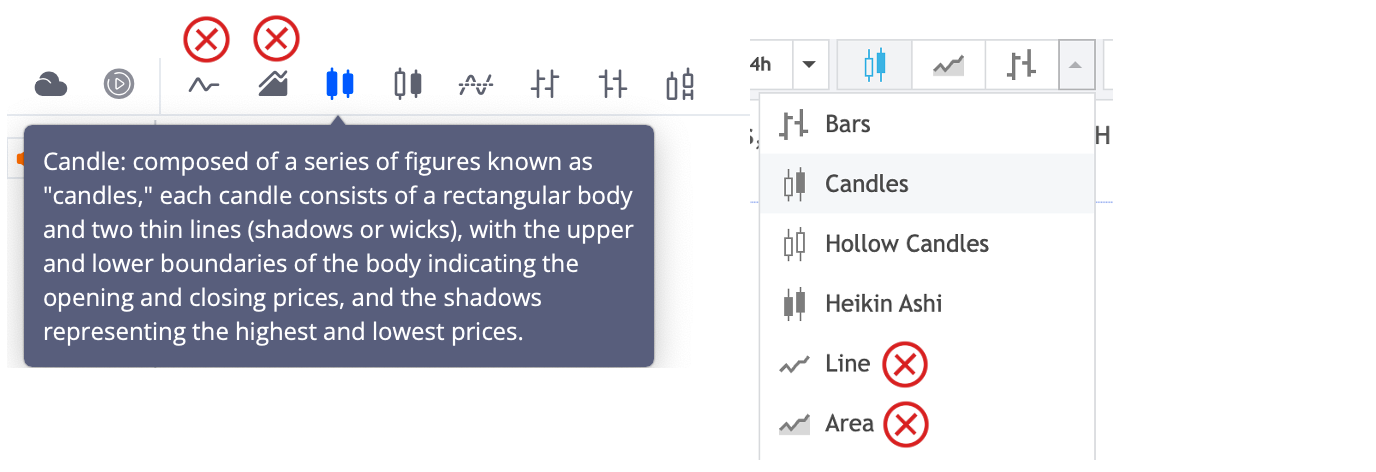 Candlesticks is a basic feature that most platforms have available, you just need to change the type of graph to candlesticks from area or line!