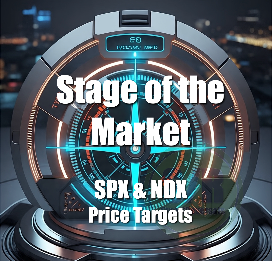 What you will see for the SPX, and in the second section, the NDX, is a study of price action that ends up with the bullish target where a major correction is likely. It’s the same approach I used in 2024 (exactly a year ago) to state that a major reversal was coming at $6,109, the actual top in February was $6,147. Let’s study the number updated:
