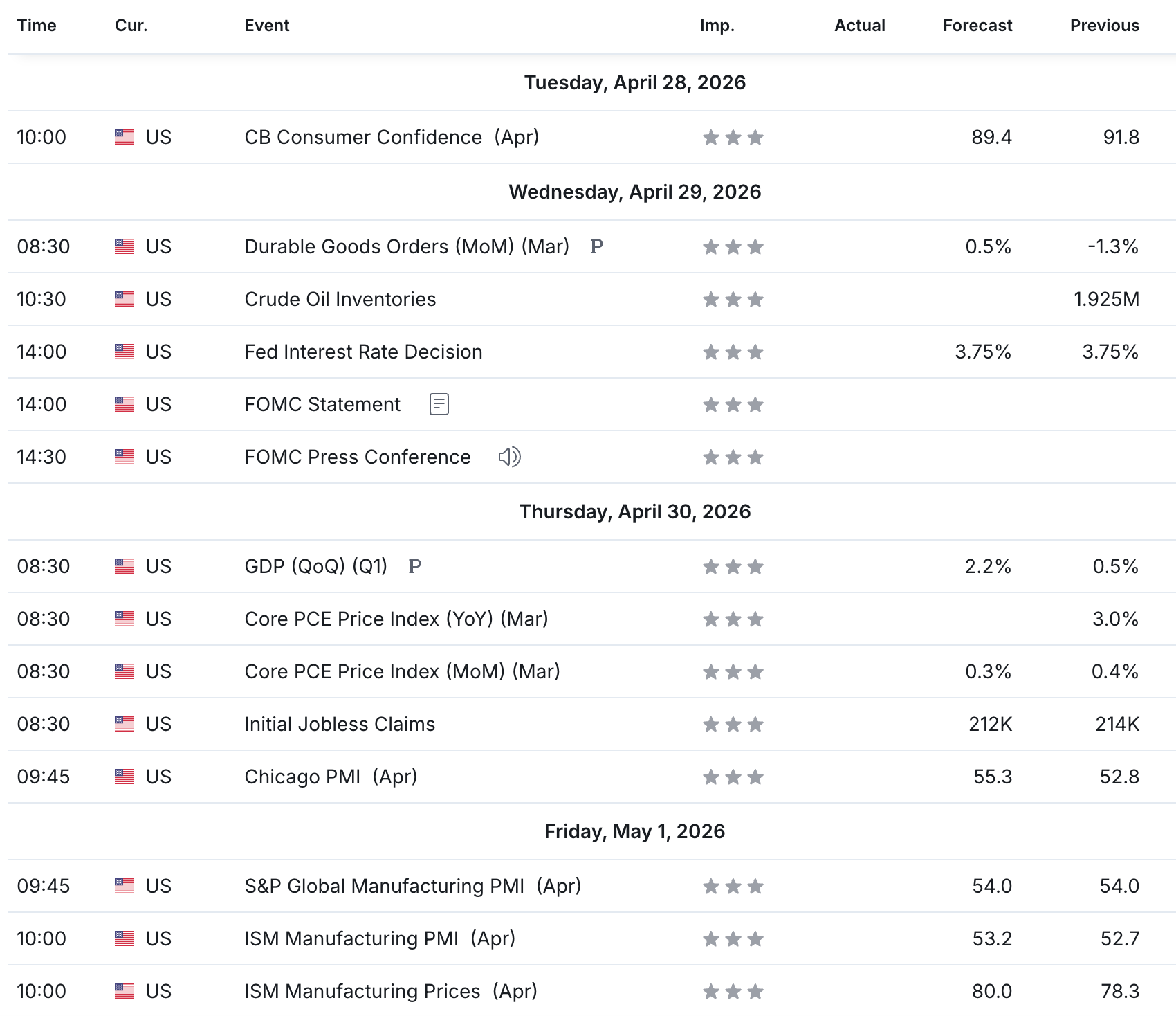 A critical week lies ahead. We are not only watching earnings from the tech giants like META, GOOG, AMZN, MSFT, and AAPL, but also other heavyweights on our watchlist including Visa (V), Eli Lilly (LLY), and Exxon Mobil (XOM).