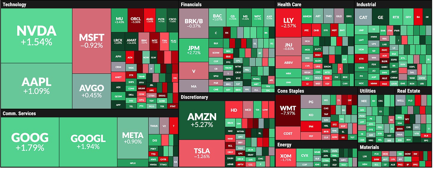 Amazon (AMZN): Reclaimed the $203 level, triggering a bullish reversal setup and closing up +5.27%.