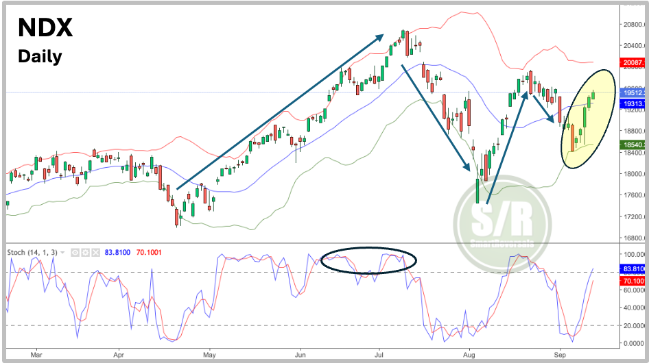 See the inverse position in oscillators and Bollinger bands, today both are pointing in the same direction, who is telling the truth?