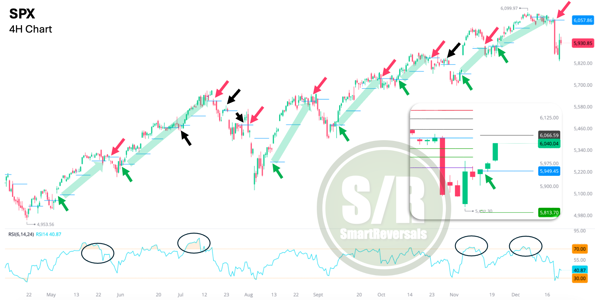 Method 1: The Confident End-of-Week Entry An investor or a swing trader might open a long position around the close on Friday or the open on Monday, based on the strength of the weekly setup alone. The plan is simple: stay in the trade as long as the price remains above the central level (Back then at $535 for SPY, or $5,384 for SPX). This approach relies on the power of the weekly signal.