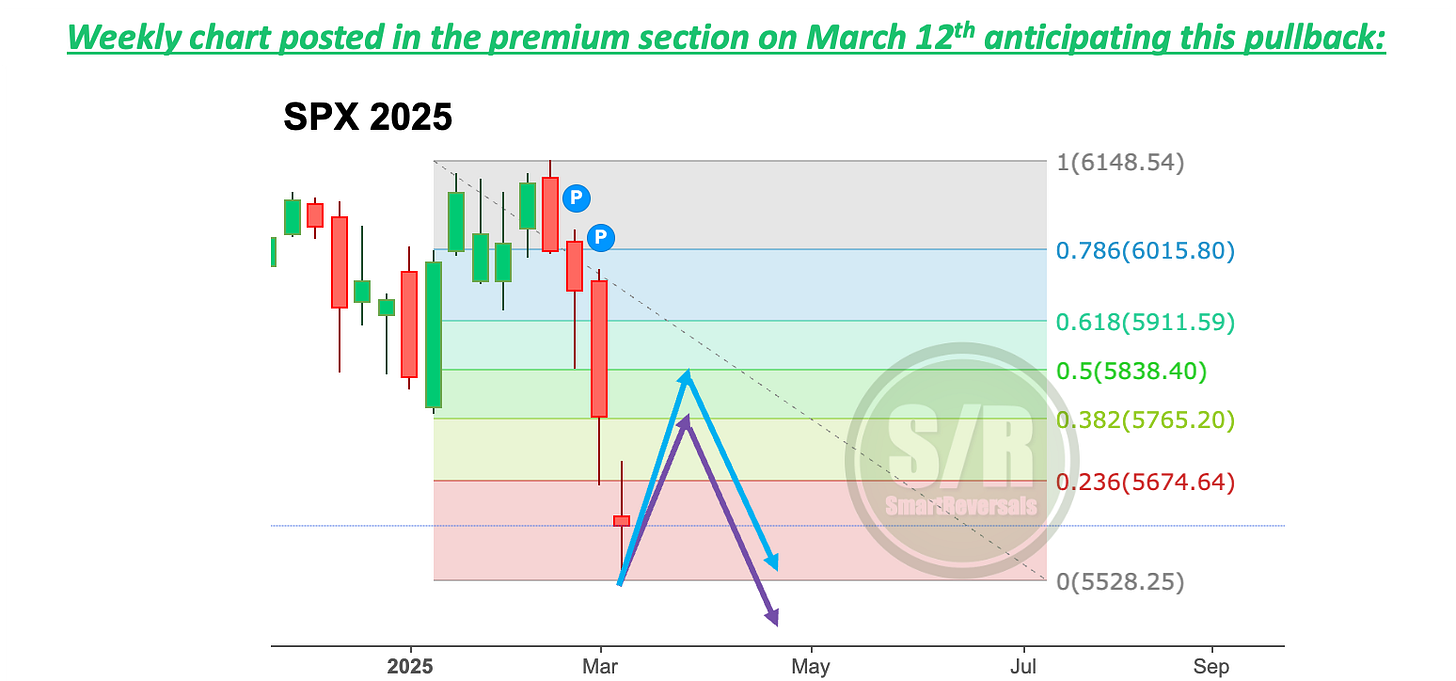 To illustrate, and based on specific references like the 2018 and 2022 corrections, the following SPX chart was presented on March 12th for 2025.